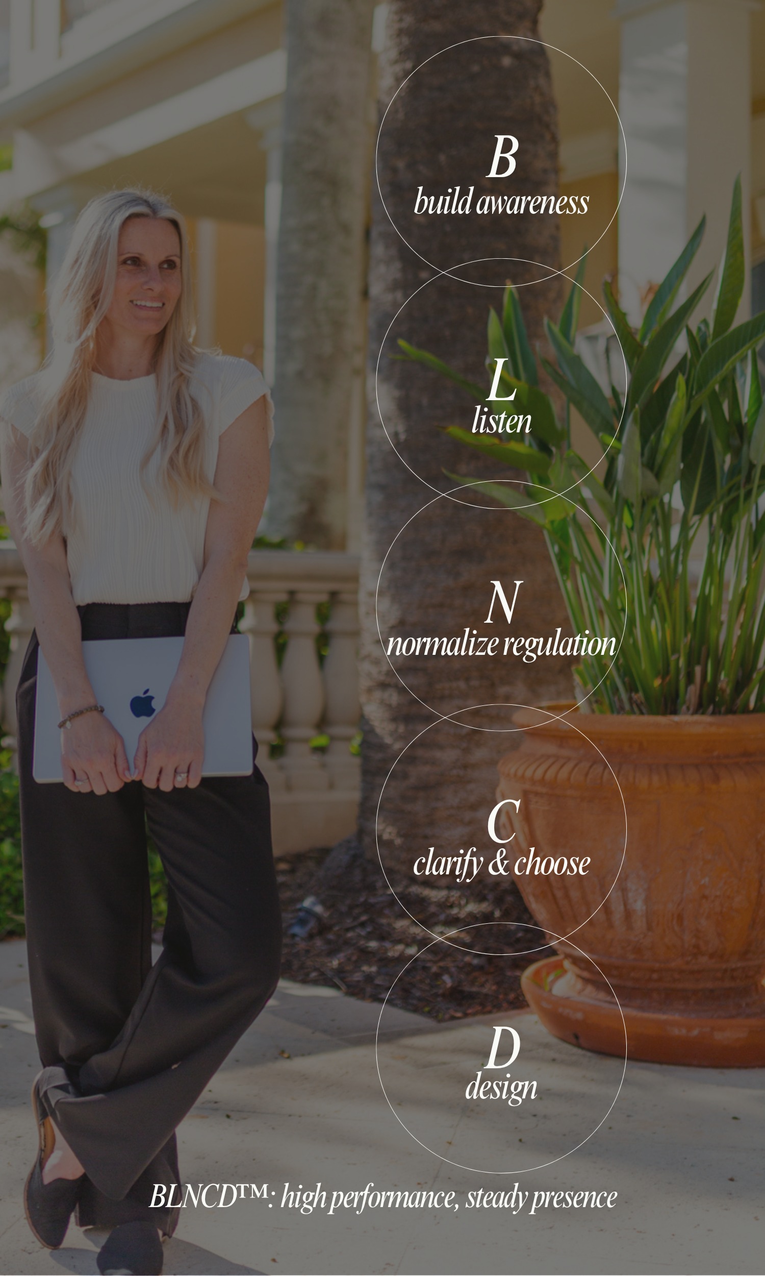 BLNCD™ Method signature framework to help you regulate under pressure, clarify priorities & values, and create a steadier rhythm in life & leadership.